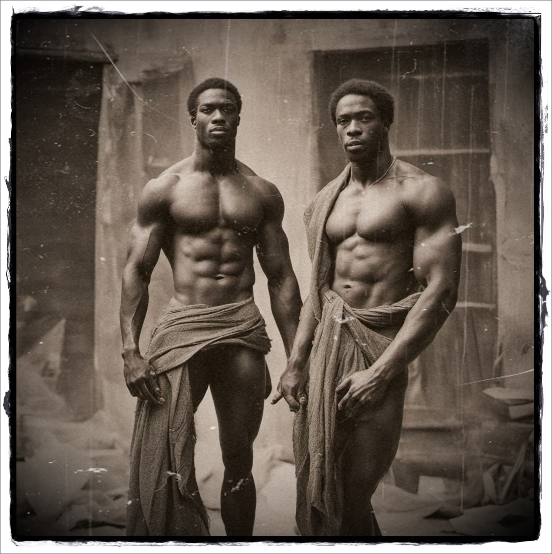 André found himself peeking into Floyd’s shirt, that had opened and was giving a tempting glimpse of the black man’s still powerful pecs; he quickly averted his gaze and said: “I’m happy you’re back. Now go to the workers’ quarters, look for Tim and Jim, you know them, they’re the two men who came here with you, they are both managers of the plantation. They will assign you an accommodation, for you and Adane.”