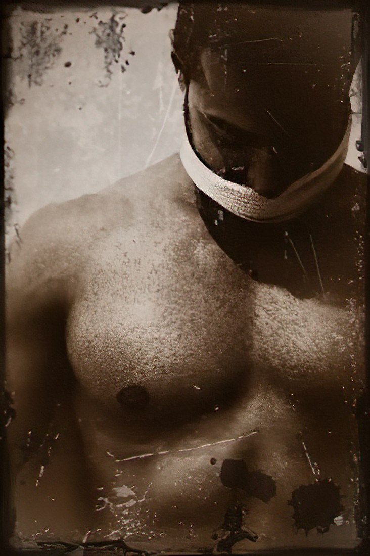 “Damn you!!” – André shouted, furious, and angrily grabbed the slave’s worn-out shirt and ripped it to shreds, leaving it hanging in tatters from the wide black shoulders. Then he hooked his fingers into the waist of the frail undergarment and pulled hard, ripping it away from the man’s loins.