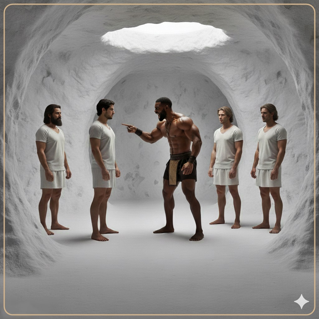 When he entered the mess hall, there were five Pales of different ages who’d gathered there for breakfast. One of them was Jason, who was standing in front of an altar carved in the wall, with his hands raised. Deimos was about to rudely address the Pales, but shut his mouth, in reverent silence, when Jason invoked aloud: “Laudon!”, and a trembling blue light lit up the altar, signaling that Boba-Maiii was there and was listening to his sons.